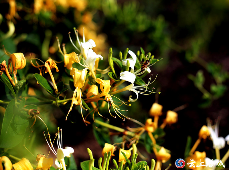 初夏时节,金银花迎来采收期。在庙滩镇小河村金银花种植基地里,连片的金银花枝繁叶茂,一簇簇黄白相间的金银花挂满枝头、香飘四溢。村民们提着篮子穿梭于花海中,细心采摘金银花,一派繁忙景象。