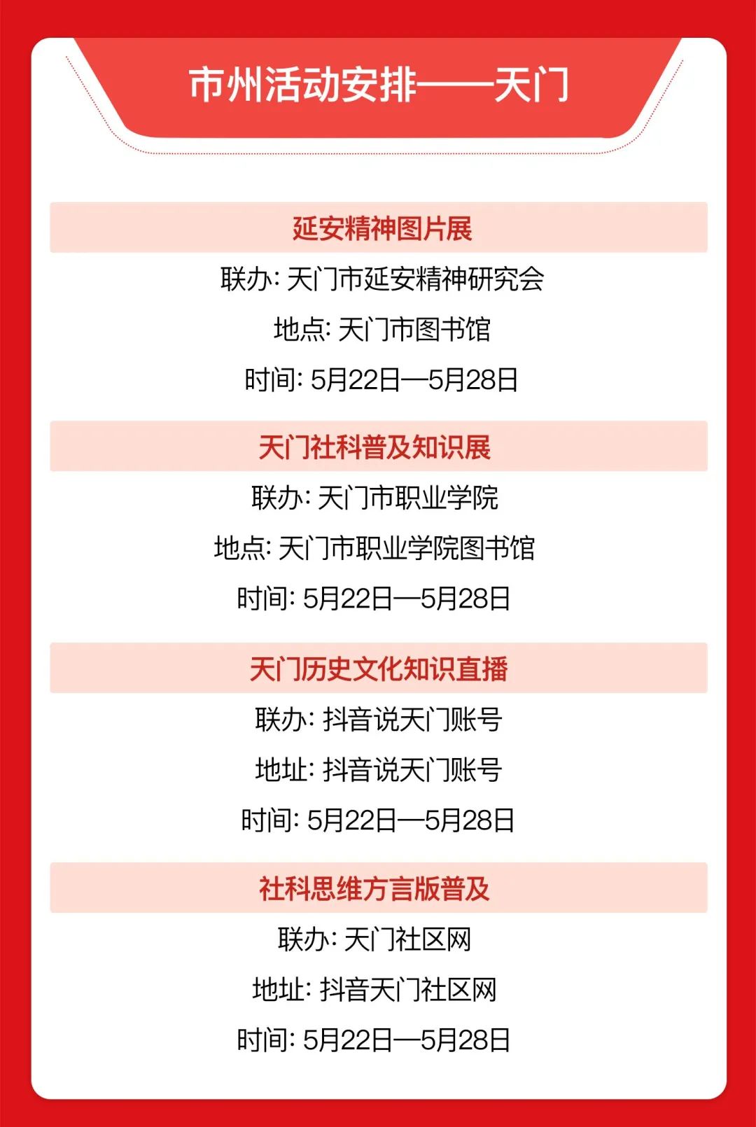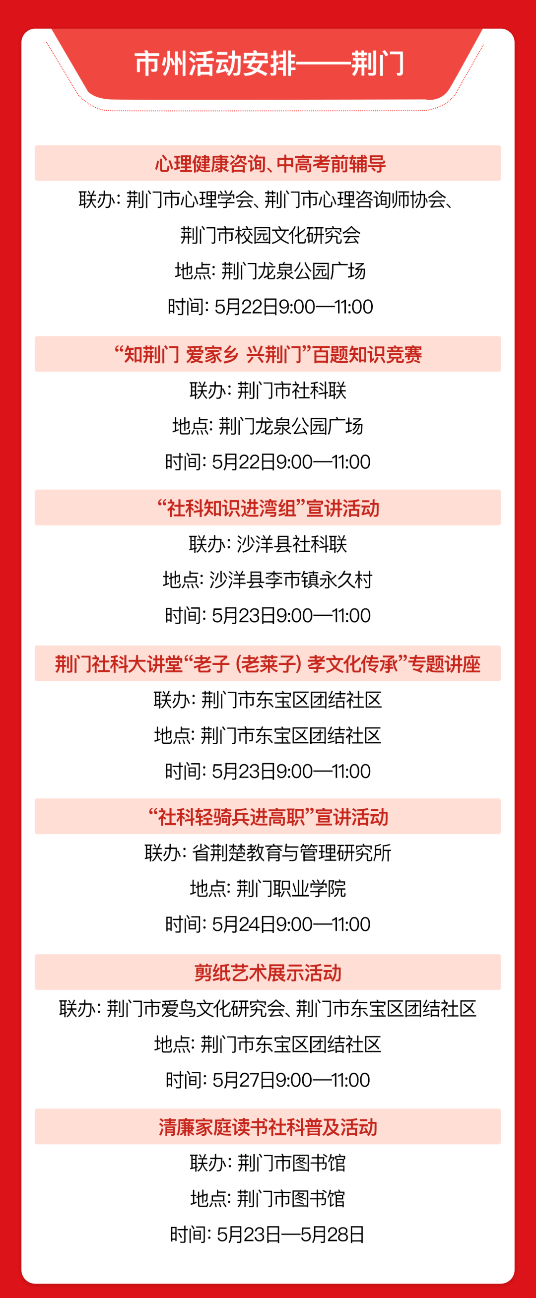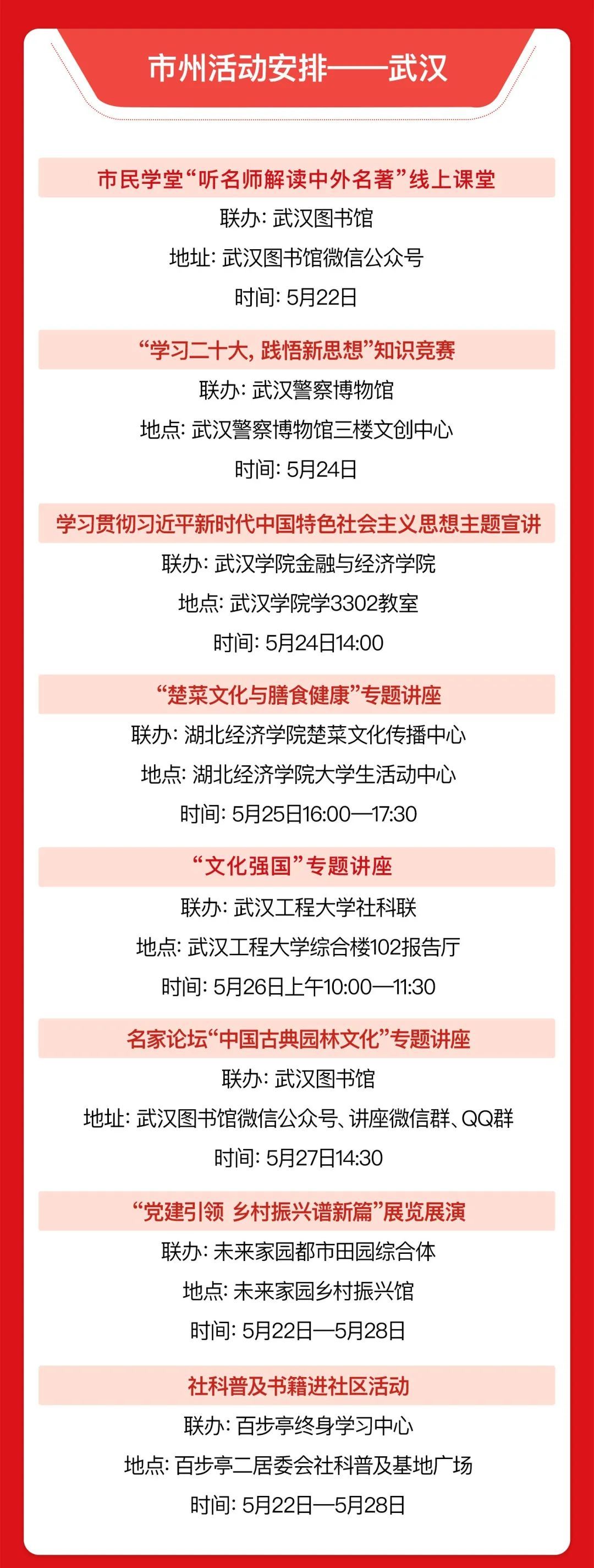 5月24日 湖北省第十二届 社会科学普及宣传周 将在武汉启动 各市州都将举办丰富的活动 湖北人在家门口 就可以尽享“社科盛宴”!