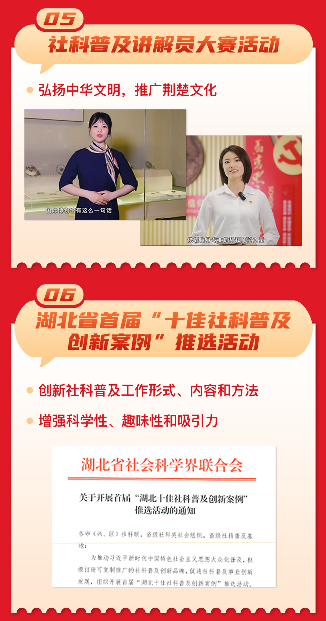 传播创新理论,普及社科知识 弘扬人文精神,倡导科学方法 湖北省第十二届社会科学普及宣传周 主办单位:湖北省社会科学界联合会 2023年5月22日——28日 敬请关注