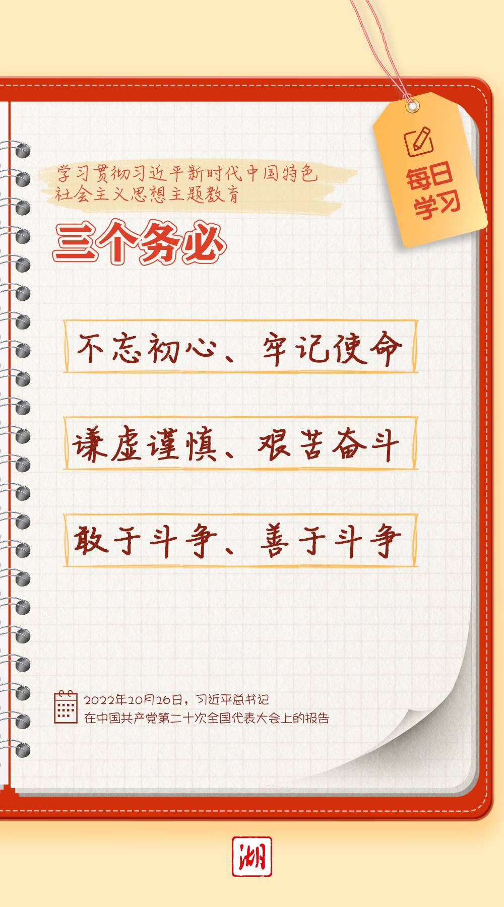 中共中央文献编辑委员会编辑的《习近平著作选读》第一卷收入了习近平总书记在2012年11月至2017年10月这段时间内的重要著作,共有讲话、演讲、指示、批示、训令等71篇,部分著作是第一次公开发表。 结合正在全党开展的主题教育,我们对《习近平著作选读》的篇目及主要观点进行了梳理,并制作成系列金句海报。 2022年10月16日,习近平总书记在中国共产党第二十次全国代表大会上作报告时指出“三个务必”。 一起来学习↓↓↓