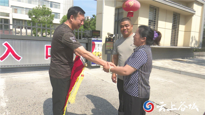 近日,谷城县城关镇红石亮社区居民夏金兰老人的家属将一面写有“救死扶伤 勇于担当”的锦旗送到县纪委监委机关,感谢纪委干部王道喜在危难之际,伸出援手救助家人。