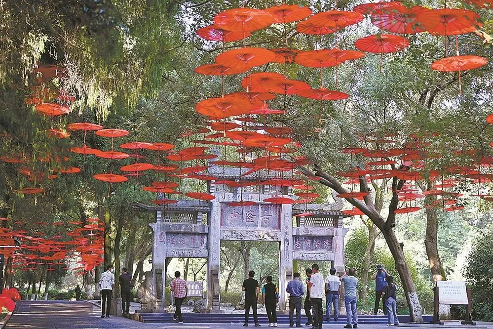 游客在古隆中景区游览。谢勇 摄 隆中山,位于襄阳城西约十公里处,也有志书说十五公里。关于隆中的得名,清光绪《襄阳府志》中记载为,“其山隆然中起”,故曰隆中。隆中山能享誉千载,就因为它是诸葛孔明的躬耕地、三顾茅庐的发生地、三足鼎立的策源地。 千百年来,到隆中拜谒追思诸葛亮的人不计其数,正如宋人邹浩所写:“一自英雄三顾后,至今车马不曾休。”这些人怀着对诸葛亮的敬仰之情,接续起隆中山的文脉,并成为古隆中深厚文化内涵的重要组成部分