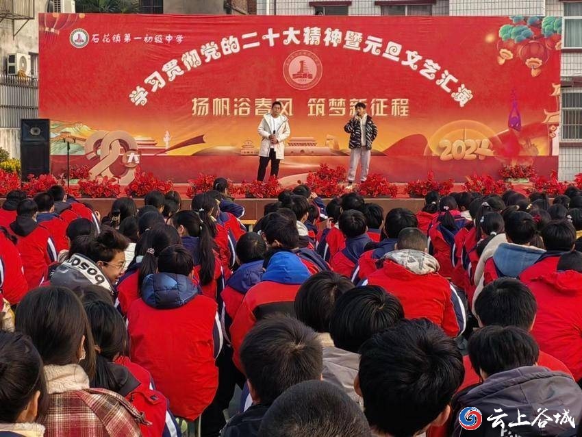 12月28日下午,谷城县石花镇第一初级中学2024年“扬帆浴春风 筑梦新征程”元旦文艺汇演在学校操场举行,师生同台展演,歌舞、相声小品、朗诵、武术齐上阵,节目精彩纷呈。