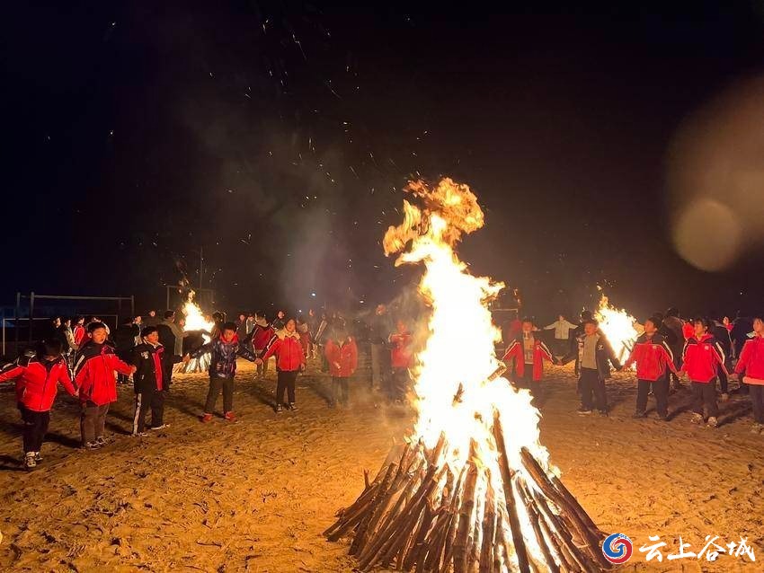 孩子们一边玩游戏,一边吃着学校精心准备的各种小零食,幸福感洋溢心头,篝火照亮了孩子们灿烂的笑脸。