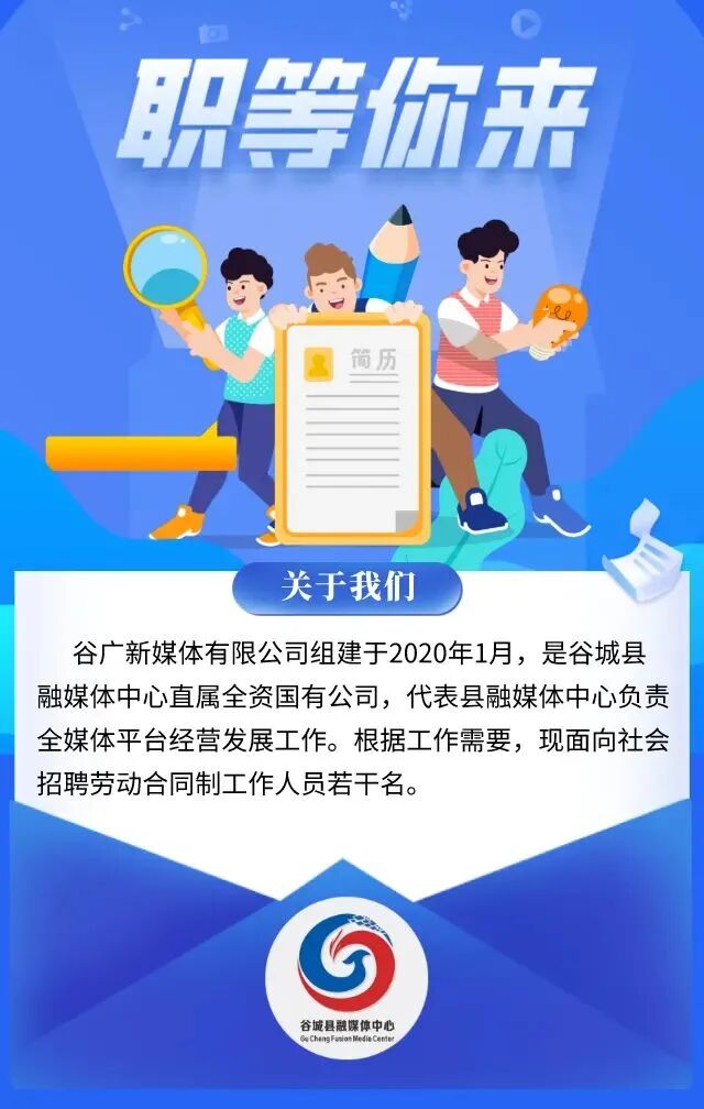 谷城县融媒体中心 2024年公开招聘 为加强谷城县融媒体中心新闻宣传力量,提升宣传质效,打造区域强势主流媒体,谷城县融媒体中心(谷广新媒体有限公司)面向社会公开招聘员工10名。