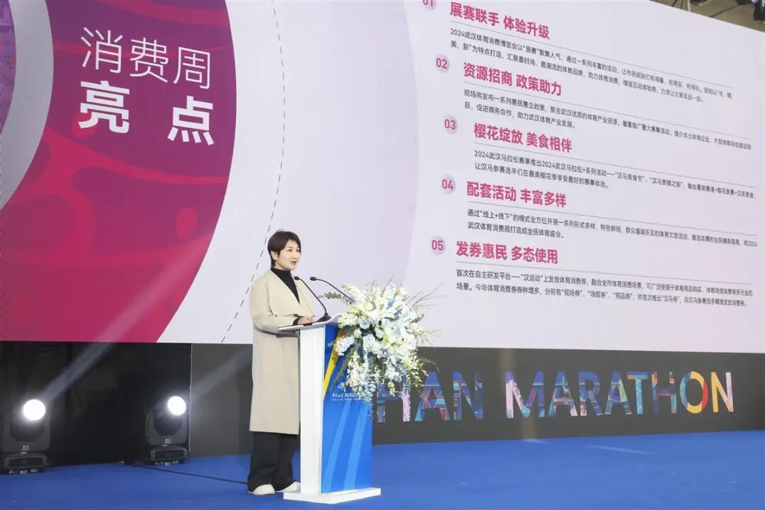 在为期4天的体博会现场,组委会还将举办丰富多彩的体育文化活动,推出棒球赛、飞盘比赛、电子竞技大赛、斯诺克比赛等观赏性强、人气高的赛事活动,令运动爱好者们沉浸式享受体育竞技的魅力。 为进一步落实体育惠民政策,满足市民朋友日益增长的体育运动需求,在武汉体育消费周期间将分批次在全市发放价值1000万元的体育消费券。今年体育消费券较往年进行升级,分为现场券、场馆券和用品券,并首次推出“汉马券”,向汉马参赛选手定向发放消费券。按照“公平、公开,先领、先得”的原则,市民朋友可以在“汉运动”武汉体育数字服务平台完成注册、申领体育消费券,领取后可在现场或平台指定商户使用。 全程终点扩容 打造更好参赛体验 2024武汉马拉松将专注赛前、赛中、赛后各个细节,打造选手心目中独一无二的参赛体验,这其中就包括继续开放赛前退出机制,2024武汉马拉松组委会将在3月2日至3月5日开放退赛通道,无法参赛的选手可选择退赛。