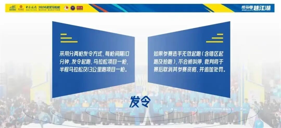 为了缓解起跑时的拥堵,2024武汉马拉松还将继续实施两枪起跑,每枪间隔10分钟。其中马拉松项目一枪,半程马拉松及13公里跑项目一枪。此外,全程终点将开放玛雅海滩内部区域,作为选手取衣及赛后拉伸康复区域,以缓解大量选手集中到达后的拥挤情况。 2024武汉马拉松将同18所在汉高校进行合作,招募7000余名志愿者,将在比赛期间给参赛选手提供专业暖心、无微不至的服务。比赛当天,赛道沿途将设医疗点30个,救护车43辆,AED(警医联动摩托车)22台,AED(骑行自行车)59台,医疗人员1020人,急救跑者100人,最大程度地保障参赛选手的生命安全。 今年的参赛福利将再次升级,在参赛包和沿途补给上,各赞助商为选手们准备了丰富的各类物资,如水果、纯净水、能量胶、盐丸等,并首次在赛道中设置降温补给点,赛事合作品牌将为选手提供降温去汗湿巾。赛事组委会还为全马选手准备了完赛拖鞋,让选手们在赛后可以得到全面的放松与恢复。 汉马美食节 助你PB、打卡美食两不误 “2024汉马美食节”将在赛期盛大开幕,组委会将通过线上、线下一系列的活动,将“汉马美食节”打造成武汉马拉松的全新配套IP,让体育成为一种新的消费引领。