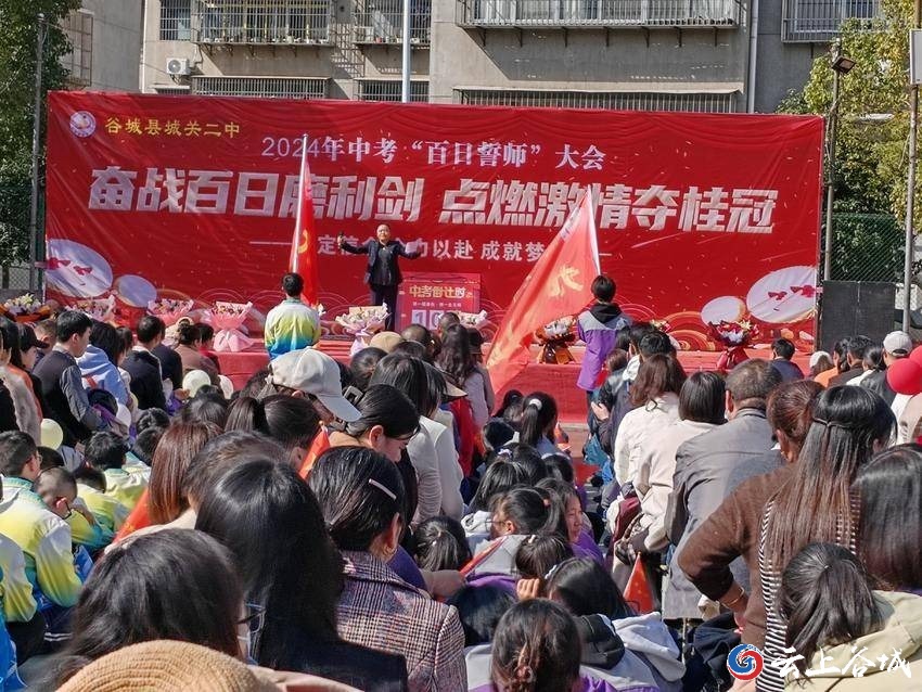 为激发九年级师生冲刺中考的决心,点燃鏖战百日的激情,坚定决胜中考的决心,记录青春成长的足迹,3月11日,适逢“二月二,龙抬头”这个象征着生机、希望的日子,谷城县城关二中举行九年级中考百日倒计时誓师活动,以此激励全体学生决战中考,为梦起航。学校九年级全体师生、学生家长共同参加此次盛会。