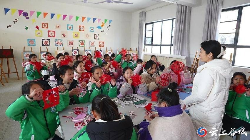 五山镇小学党支部委员、副校长杨前锋说:“下一步,我校将把剪纸艺术与‘德智体美劳’五育交融贯通,让剪纸这门古老的民间艺术在校园里绽放崭新的时代光彩。”