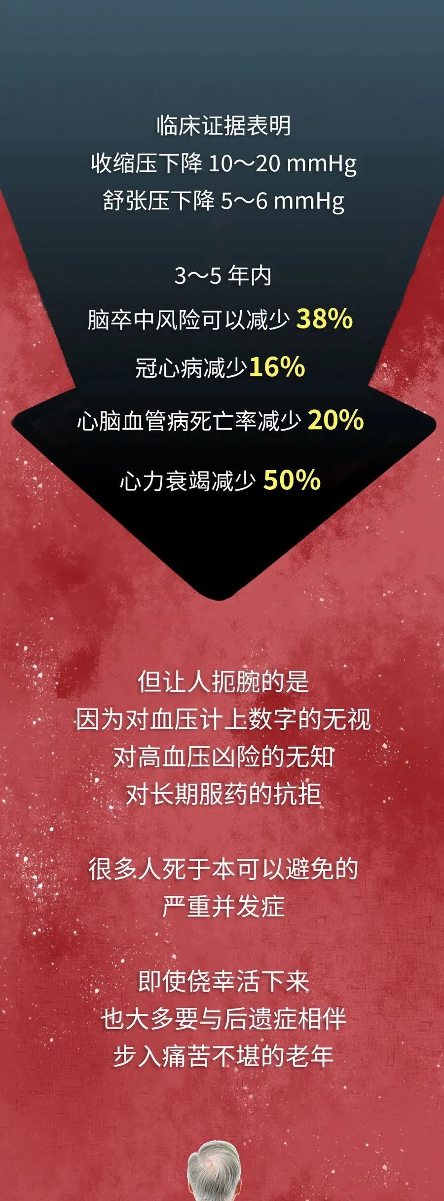 长期高血压是冠状动脉疾病、中风、心脏衰竭、心房颤动、周边动脉阻塞、视力损伤、慢性肾脏病及痴呆症等病症的主要危险因子,全球每年由高血压并发症导致的死亡为 940 万例。 降压是一场持久战。一定有很多患者和儿女,在为慢病管理这场艰难的持久战而头疼,稍有松懈就可能输给各种谣言和偏方…… 高血压的知晓率和控制率极低,而这是需要我们去为此努力。 来源:科普中国 编辑:任丹|审核:余运超
