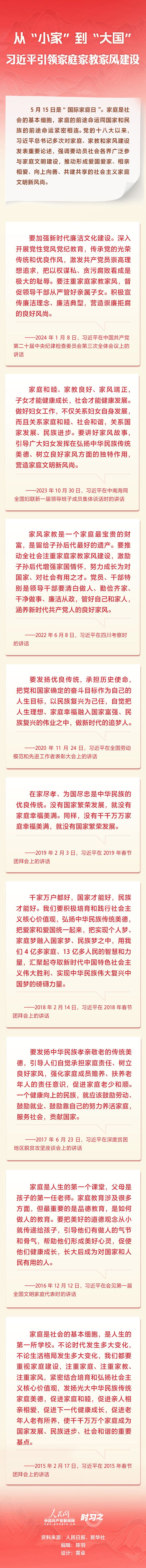 时习之|从“小家”到“大国” 习近平引领家庭家教家风建设 发布日期: 2024-05-16 字体:【大 中 小】 来源:人民网 编辑:邓植元|审核:余运超 任丹 作者:云上谷城 【关闭本页】 【打印本页】