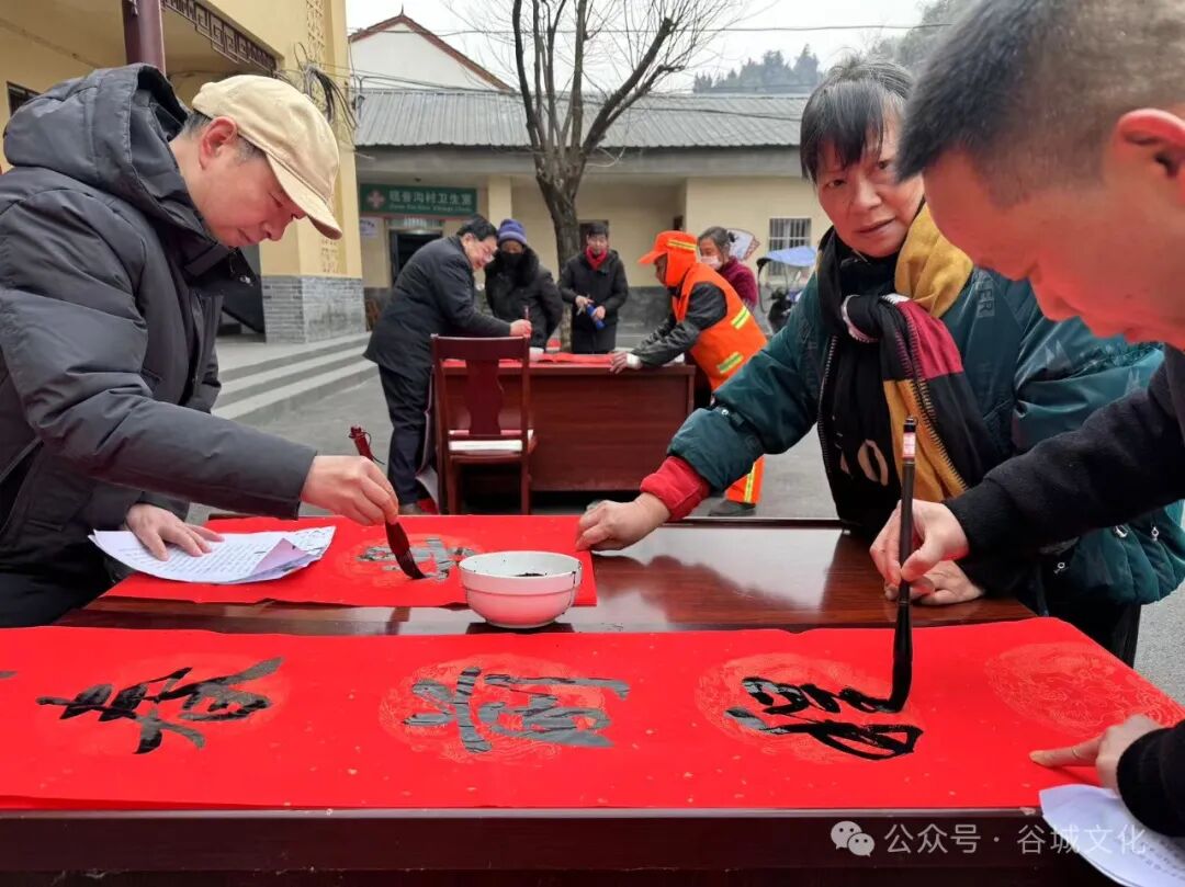 为了弘扬中华优秀传统文化,营造欢乐祥和的节日气氛,更好满足人民群众节日文化生活需求,1月14日,谷城县文化馆红色文艺轻骑兵“迎新春、送春联、送祝福”文化惠民活动走进山水秀美的南河镇。