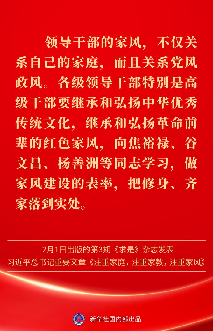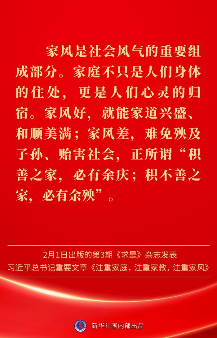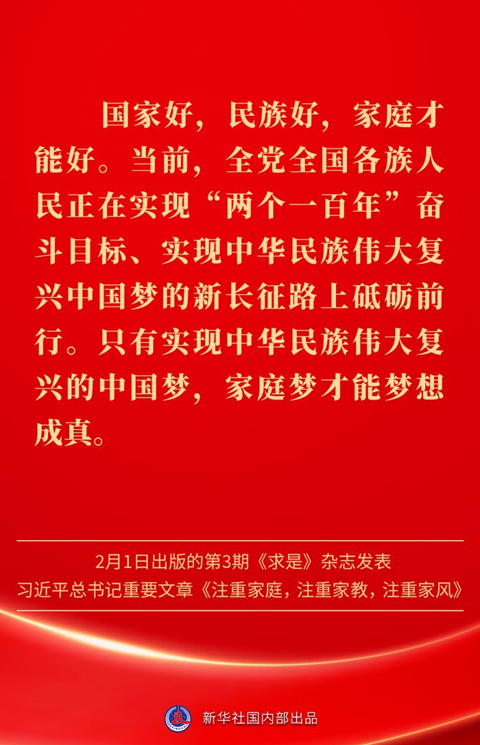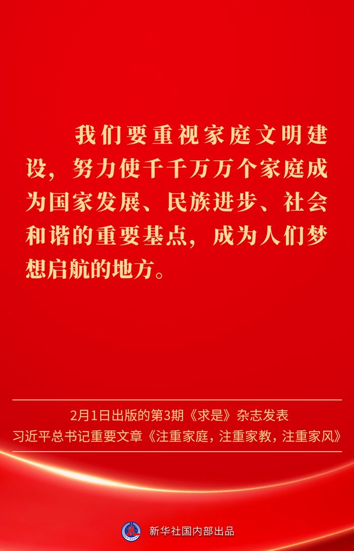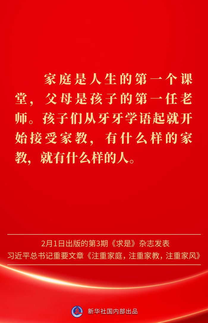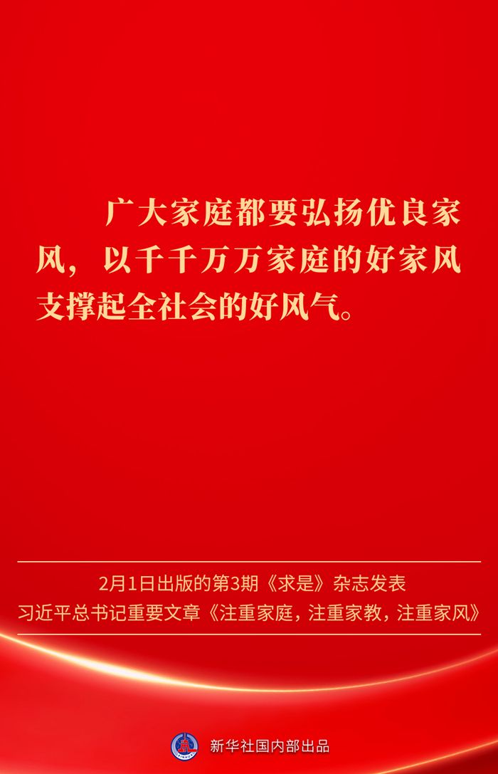 金句|新春佳节,感悟总书记对家庭、家教、家风的重视 发布日期: 2025-02-03 字体:【大 中 小】 万家团圆共庆新春佳节之际,2月1日出版的第3期《求是》杂志发表习近平总书记重要文章《注重家庭,注重家教,注重家风》。为什么要注重家庭、家教、家风?如何做好家庭文明建设?习近平总书记这样阐述—— 来源:新华社 编辑:詹丽|审核:余运超 琚晓青 作者:云上谷城 【关闭本页】 【打印本页】