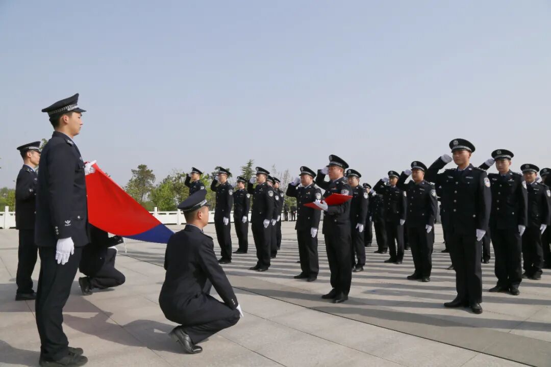 “我是中国人民警察,我宣誓!”在公安部二级英模雷海波的领誓声中,全体民警面向警旗,重温《公安机关人民警察誓词》,铿锵誓言掷地有声,在山林中久久回荡。