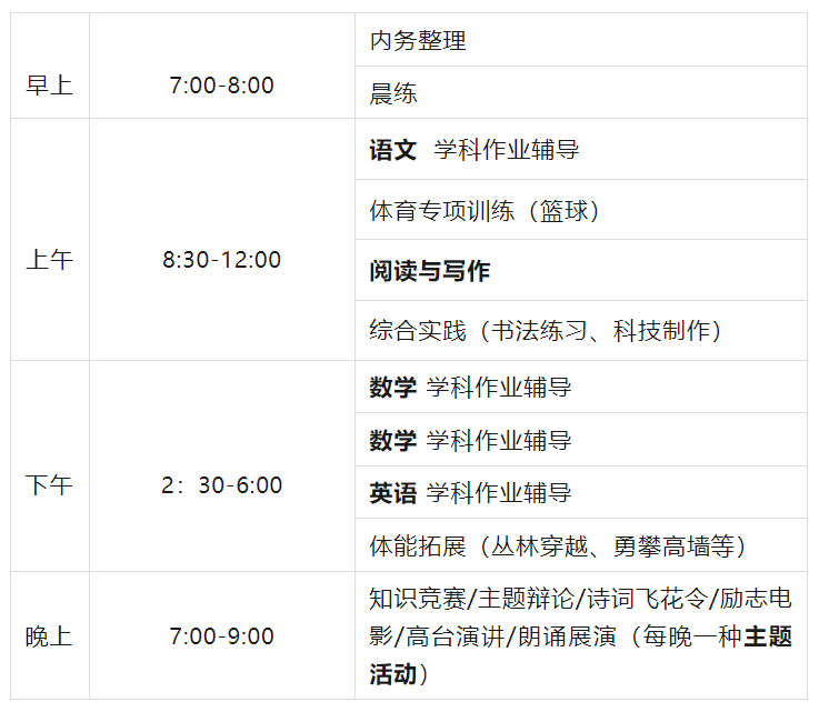 托管时间 小学: 2025年7月7日—7月21日(7日上午报到,21日中午结束),合计14天。 初中: 2025年7月7日—7月28日(7日上午报到,28日中午结束),合计21天。 收费标准 小学:2980元,初中:3680元(包含豪华大巴接送、营服及所有食宿费用)。招生咨询电话:19307107706申老师(微信同号)