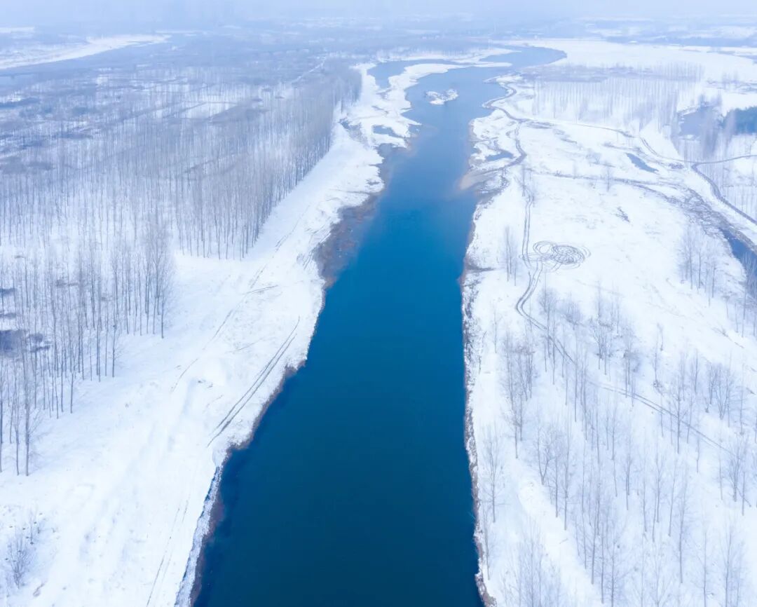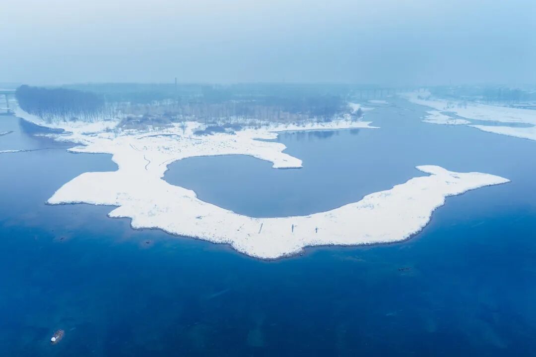 南河进入谷城县城关镇后,河道明显变宽,中间出现了不少沙洲,因为雪的装扮,沙洲十分美丽。
