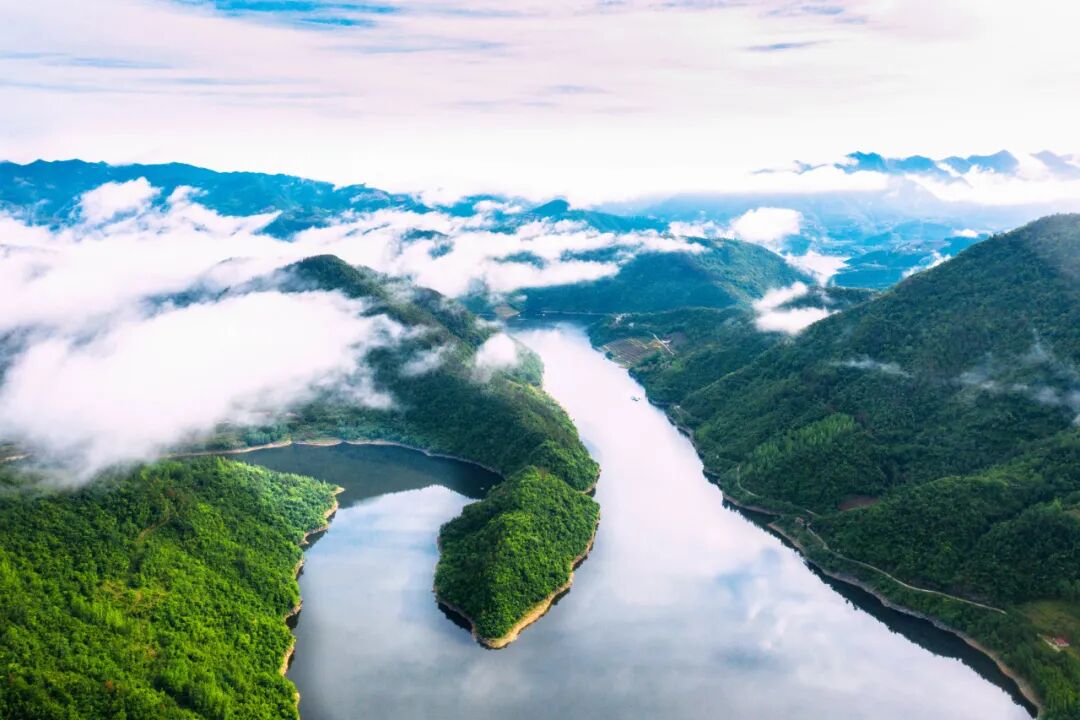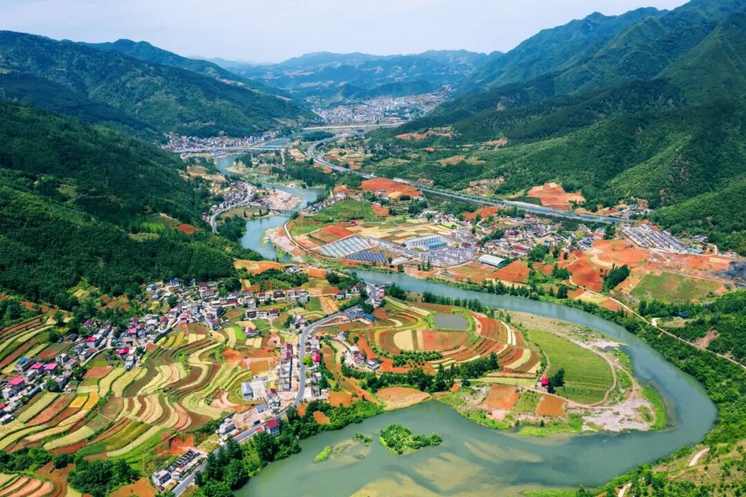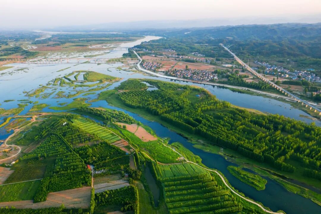 汉江中游支流南河(右)与支流两河(左上)在谷城县赵湾乡渔坪村粟谷汇合