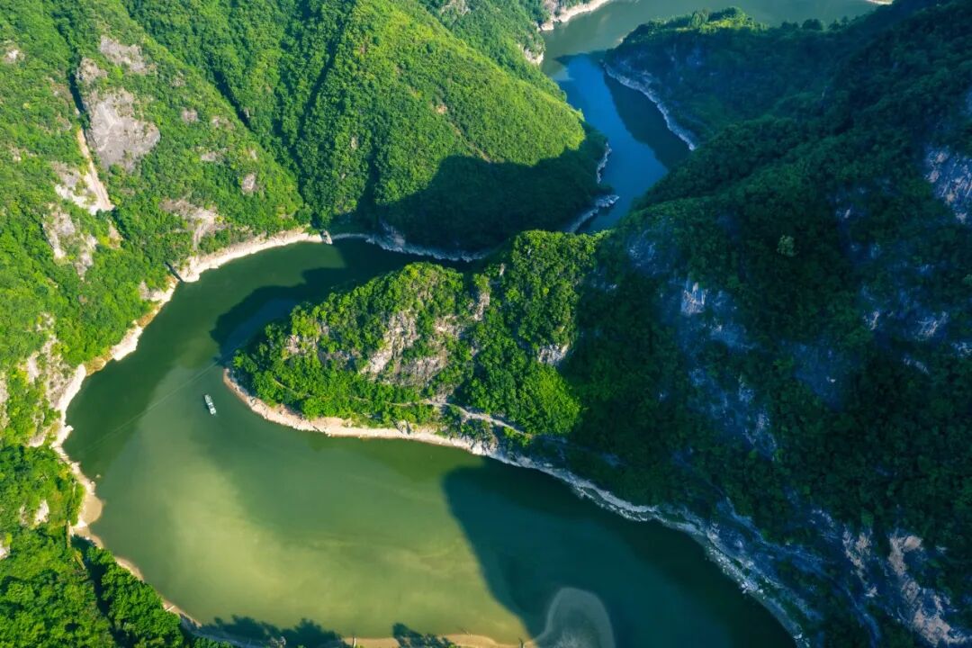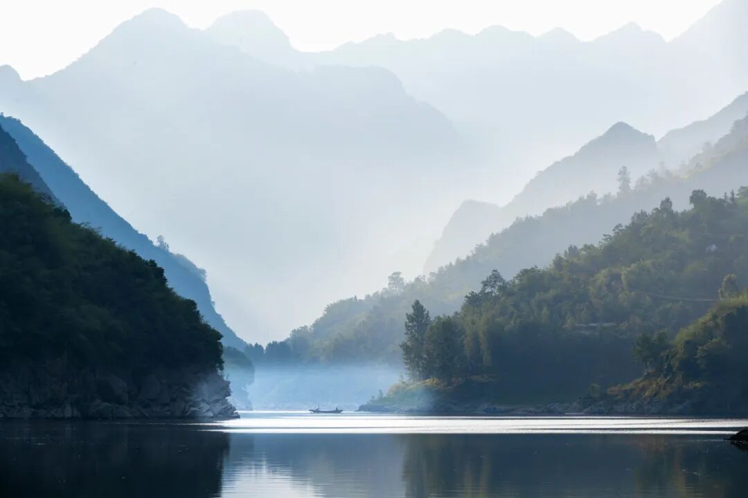 粉水上的小船。南河之水发源于神农架,流淌在深山幽谷之中,清澈见底,纯净无瑕,相传为汉丞相萧何夫人脂粉之水,故又名“粉水”。
