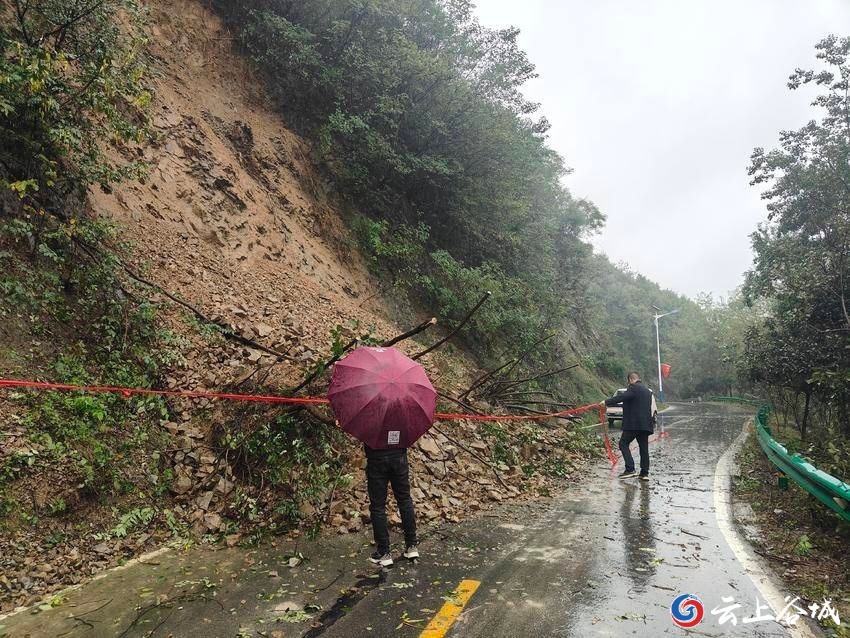 连日降雨给群众出行带来安全隐患。10月20日,谷城县城关镇老君山村村支两委在例行巡查过程中,在村内樱花大道发现一处山体滑坡,泥土和碎石占据了部分路面,对道路交通安全构成威胁。
