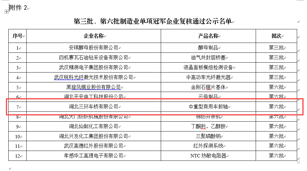 近日,从国家工业和信息化部传来消息,湖北谷城三环车桥公司凭借其卓越的综合实力与稳固的行业地位,成功通过了国家制造业单项冠军企业复审,标志着公司在细分领域的冠军实力获得了国家层面的持续权威认证。