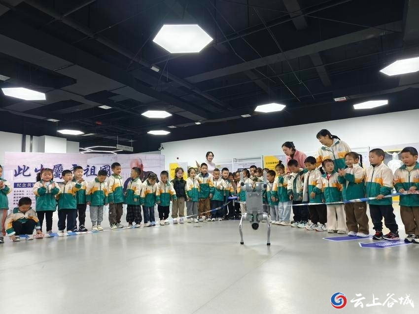 最引人注目的莫过于机器狗表演环节。这只灵活的机器狗不仅会作揖、翻跟斗、倒立,还能与孩子们智能对话,对答如流。孩子们围坐一圈,惊叹声与欢笑声此起彼伏。在互动环节中,机器狗模仿动作、回答问题的能力更是将现场气氛推向高潮。一名小朋友兴奋地说:“它好像是真的小狗,原来科技这么有趣!”