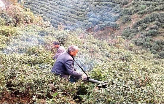 据了解,该村平剪工作覆盖全村200亩茶园,村民们分片作业、协作高效,预计将在本周内全部完成。届时,整片茶园将形成整齐划一的 “树冠层”,既便于后续管理,也能为来年春季新芽萌发创造均匀的生长空间。 茶园除草与平剪工作同步开展,三岔村为避免除草剂影响,坚持人工清理模式。村民们穿梭于茶树间,不仅拔除地表杂草,还深挖根系防止复发。清理后的杂草经粉碎,被铺在茶树根部充当“天然覆盖物”,实现“变废为宝”,既能抑草减耗,又能保温保墒,为茶树根系营造适宜生长环境。目前除草任务已完成大半,将与平剪同步收尾。