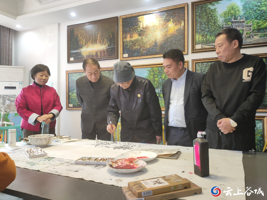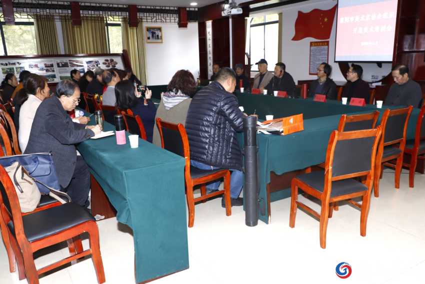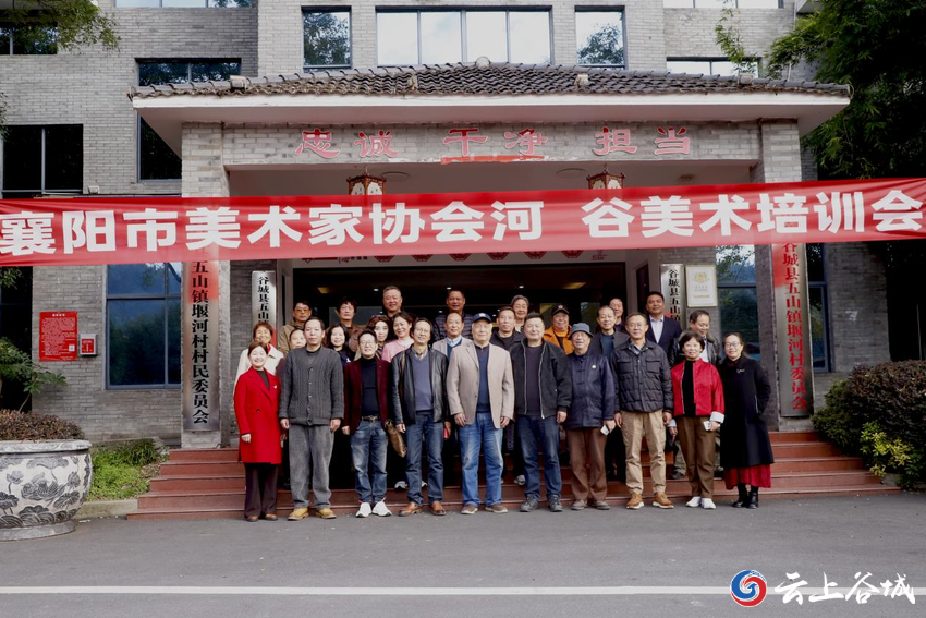 11月13日,襄阳市美术家协会在谷城县堰河村举行培训会。来自谷城与老河口两地的近30名美协会员参加培训。