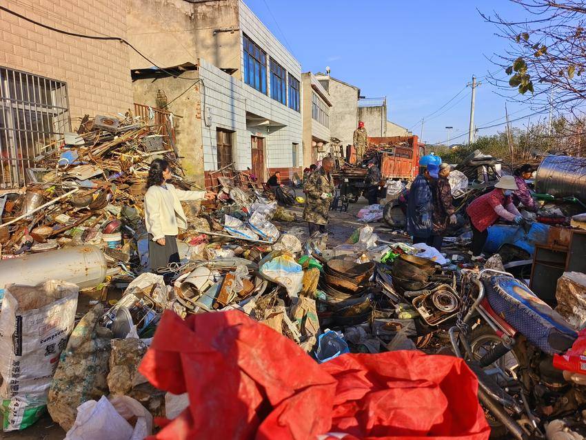 保洁员们有的专注地进行垃圾分类,有的细致地捡拾路旁、沟渠的白色垃圾,还有的及时清运收集的废弃物,全方位守护村庄环境整洁。