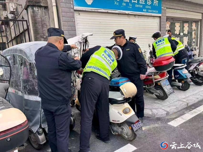 行动中,城市管理综合执法大队主动作为,出动10名执法人员、3辆执法车辆,与交警部门密切配合,形成整治合力。执法人员坚持“教育为先、劝导为主、依法整治”的原则,对违规停放的车辆耐心宣讲交通法规与市容管理规定,累计劝离违停车辆20余辆;对拒不配合、违规停放情节严重的车辆依法采取暂扣措施,共暂扣3辆;同时,重点清理非机动车违规加装的遮阳伞、雨篷,现场拆除50余个,有效消除了因违规加装设施导致的视线遮挡、操控不便等安全风险。