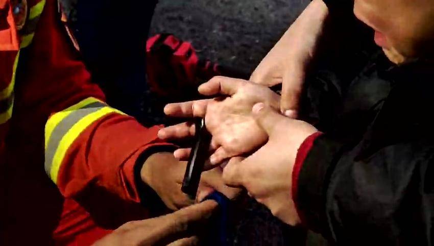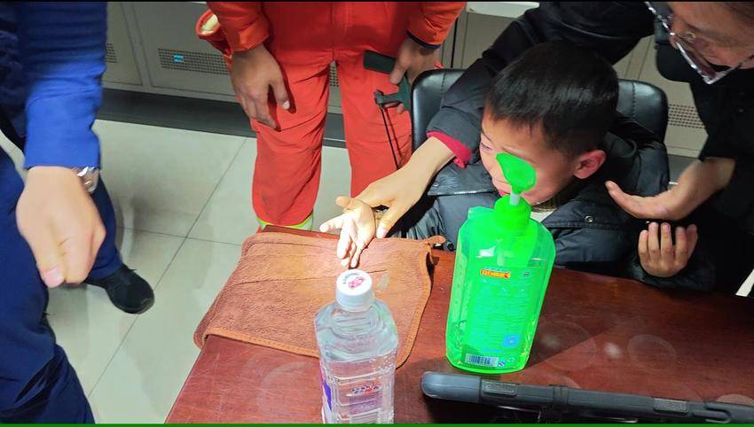 消防救援人员在进行进一步细致观察后发现小孩手指较细与插入空洞有一定的空间,便立即采用保守的方法使用洗手液对卡住位置进行润滑,然后再慢慢取出。在救援过程中消防救援人员不断安抚孩子的情绪,最终经过紧张施救,孩子的手指成功脱困。所幸手指仅是轻微充血和肿胀,并无大碍。