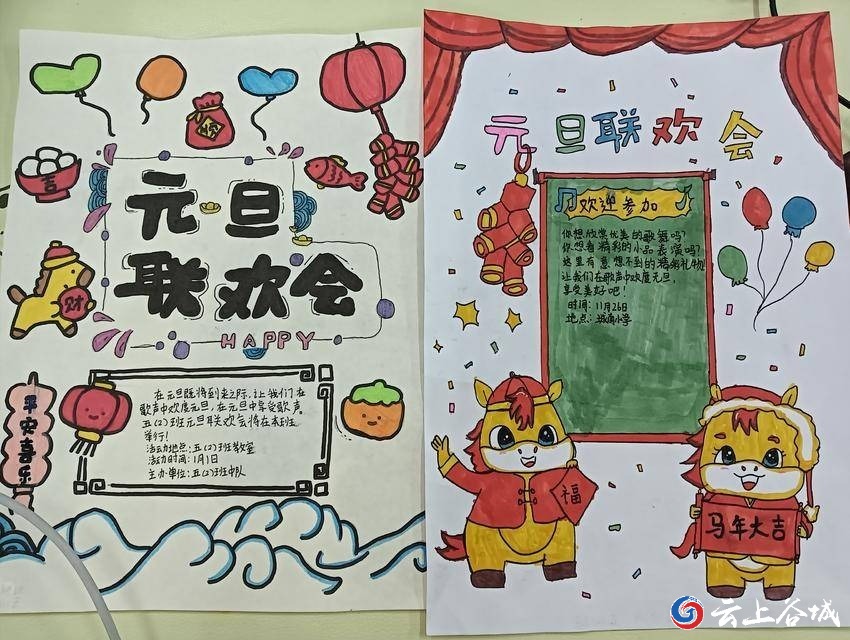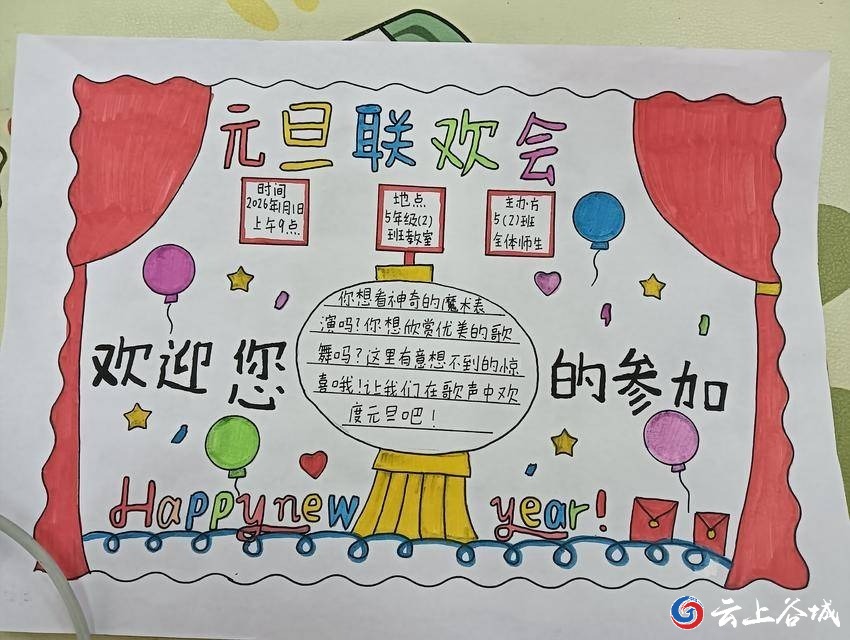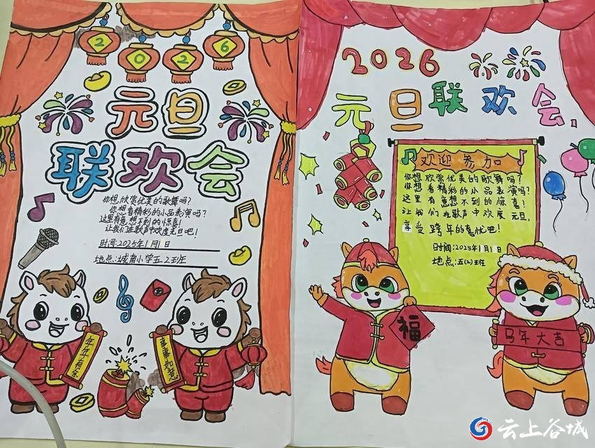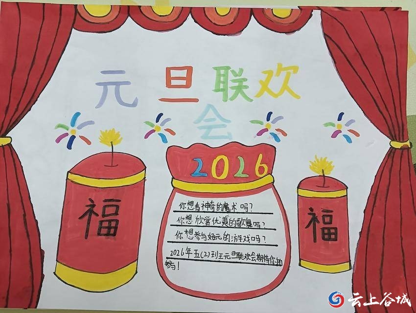元旦将至,为营造欢乐祥和的节日氛围,丰富校园文化生活,谷城县城关镇城南小学近日开展了元旦联欢会宣传海报设计活动。全校学生踊跃参与,用画笔与创意勾勒出心中的新年盛景。