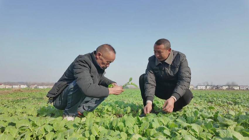 在盛康镇张棚村的油菜田里,农技人员正仔细查看苗情。针对部分晚播弱苗,他们指导农户及时中耕除草、密实土壤,并喷施植物生长调节剂,增强油菜抗寒能力。