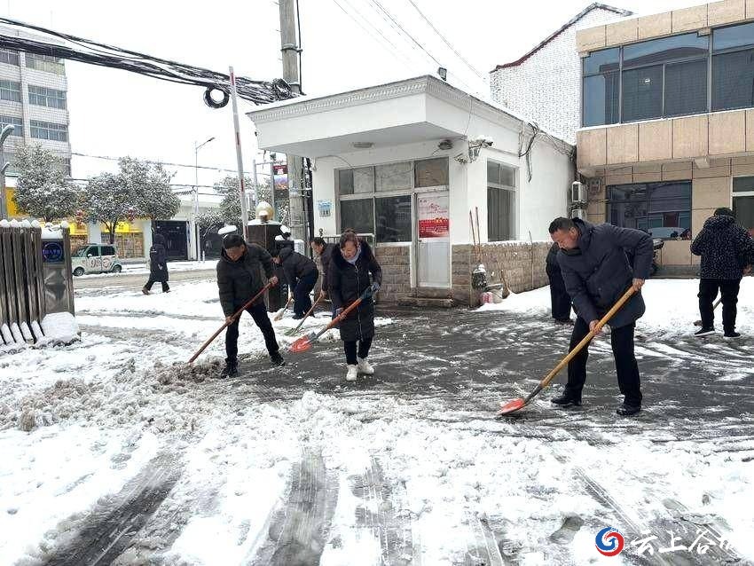 镇党委第一时间启动应急响应,召开专题部署会,明确分工、压实责任。机关干部主动扛起使命,全员上阵聚焦机关单位门口广场、进出通道及周边路段等,开展扫雪除冰专项行动。