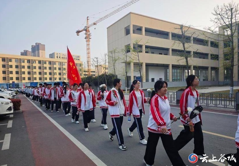 春风拂松柏,清明祭忠魂。4月1日,谷城县职教中心(县二中)以党建带团建为引领,组织1500余名师生徒步前往县烈士陵园,开展清明祭扫主题教育活动。师生以脚步砺志、以缅怀铸魂,将爱国主义教育、革命传统教育与实践育人紧密结合。 当天,队伍高举旗帜、步伐铿锵,向着烈士陵园坚定前行。全体师生相互鼓励、携手并进,在长途跋涉中锤炼意志品质,切身感悟革命先辈不畏艰难、奋勇向前的奋斗精神,用坚持与担当诠释青春力量。