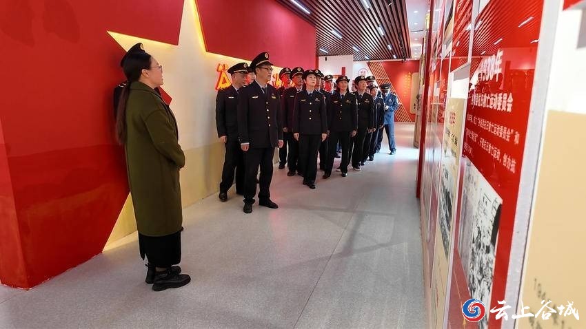 祭奠仪式结束后,全体人员走进黄山垭政治生活馆,在讲解员的带领下,逐一参观馆内各个展区。馆内陈列的珍贵历史照片、文献资料、革命实物,生动再现革命先辈们在艰苦卓绝的环境中,坚守理想信念、浴血奋战、无私奉献的峥嵘岁月。