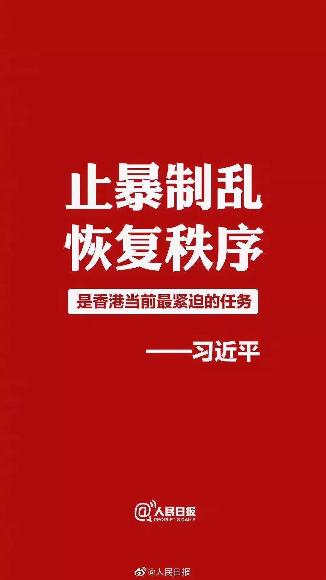 当地时间11月14日,国家主席习近平在巴西利亚出席金砖国家领导人第十一次会晤时,就当前香港局势表明中国政府严正立场。 习近平指出,香港持续发生的激进暴力犯罪行为,严重践踏法治和社会秩序,严重破坏香港繁荣稳定,严重挑战“一国两制”原则底线。止暴制乱、恢复秩序是香港当前最紧迫的任务。我们将继续坚定支持行政长官带领香港特别行政区政府依法施政,坚定支持香港警方严正执法,坚定支持香港司法机构依法惩治暴力犯罪分子。中国政府维护国家主权、安全、发展利益的决心坚定不移,贯彻“一国两制”方针的决心坚定不移,反对任何外部势力干涉香港事务的决心坚定不移。