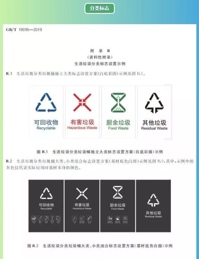此外,新版标准删除了“大件垃圾”、“可燃垃圾”、“可堆肥垃圾”和“瓶罐”等4个标志类别,增加了“厨余垃圾”、“灯管”、“家用化学品”标志类别。 针对部分试点地区的差异,例如厨余垃圾、餐厨垃圾或者“湿垃圾”,在新标准中,都统一为厨余垃圾。 标准编制单位北京市城管研究院张劲松表示,本标准适用于生活垃圾的分类投放、分类升级、分类运输和分类的处理工作,标准适用范围的调整,更加注重生活垃圾分类标志在应用当中的规范性和广范性。 “全国垃圾分类”小程序近期将上线 面对《生活垃圾分类标志》新版标准,人们要如何知道自己扔的是什么垃圾呢? 近期,“全国垃圾分类”小程序将上线运行。不明白的地方,都可以用这个小程序进行查询。