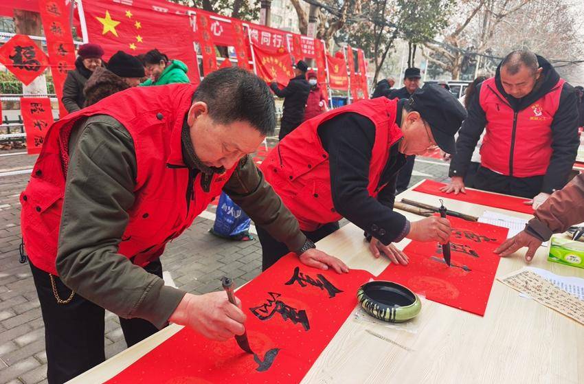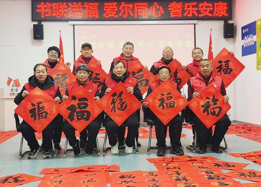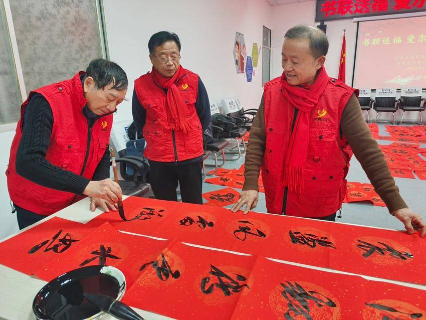 在与谷城爱尔眼科的党建共建中,协会老书画家们现场挥毫创作。仅1月23日的预热活动,十余位书画名家就写下60副新春对联、120个福字,28日又写了100副对联和200个福字,墨香里的美好期许与新春祝福,让群众在感受传统文化魅力的同时,收获满满喜悦。