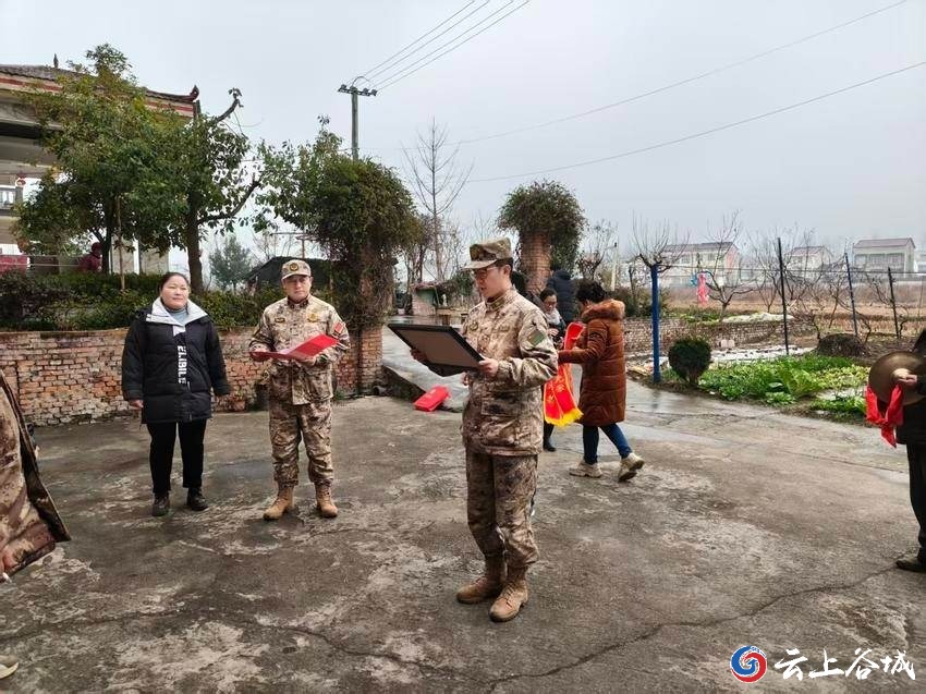 1月29日,喜庆的锣鼓声打破了冬日的寂静,由县人民武装部、县退役军人事务局、开发区退役军人服务站及社区工作人员组成的送喜报队伍,来到谷城经济开发区洞山寺村荣立三等功的现役军人杨德卿家中,为其家属送上立功喜报与慰问金,让军属在热烈喜庆的氛围中,共享这份荣光。