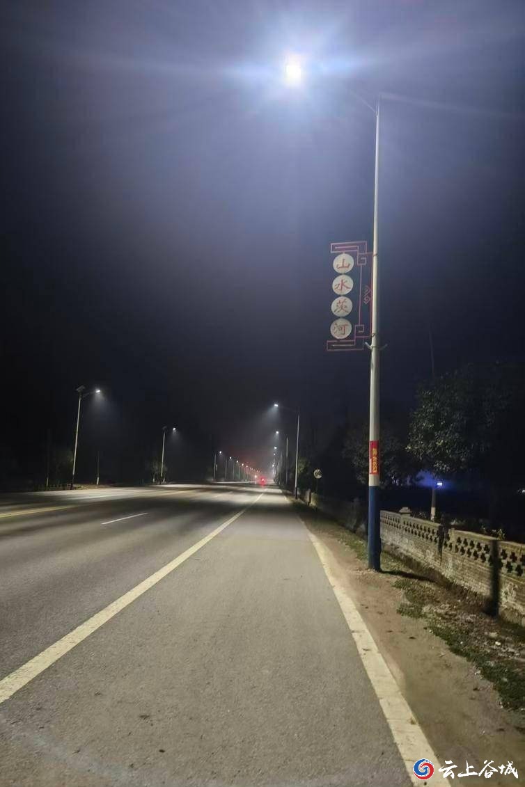 近日,随着最后一盏太阳能路灯在村口调试完毕,谷城县茨河镇庙岗村S303主干道及重点公共区域路灯安装工程全面竣工并投入使用。夜幕降临,百余盏崭新路灯依次亮起,柔和明亮的灯光不仅驱散了长久的黑暗,更照亮了村民回家的路,温暖了大家的心。
