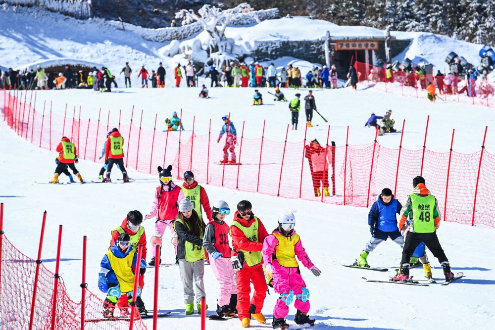 2026年2月2日,在江西省宜春市铜鼓县排埠镇七星岭滑雪场,参加冰雪冬令营的学生在教练的带领下体验冰雪运动。新华社发(周亮摄) 上冰上雪从娃娃抓起,全民参与生态日趋成熟。黑龙江将每年最后一周设为“中小学生冰雪周”;北京延庆把幼儿纳入冰雪普及范围;内蒙古呼和浩特迎来载着上千名大湾区学生的冰雪研学专列…… 近年来,冰雪运动持续升温:《大众冰雪消费市场研究报告(2024-2025冰雪季)》显示,仅该冰雪季全国居民冰雪运动参与人数就达2.92亿,参与率20.61%,较上一季增加约2744万人。 中国冰雪运动早已突破“山海关”的地理界限,实现“南展西扩东进”。数据显示,截至2025年4月,全国79个室内滑雪场中,55个位于南方省份。