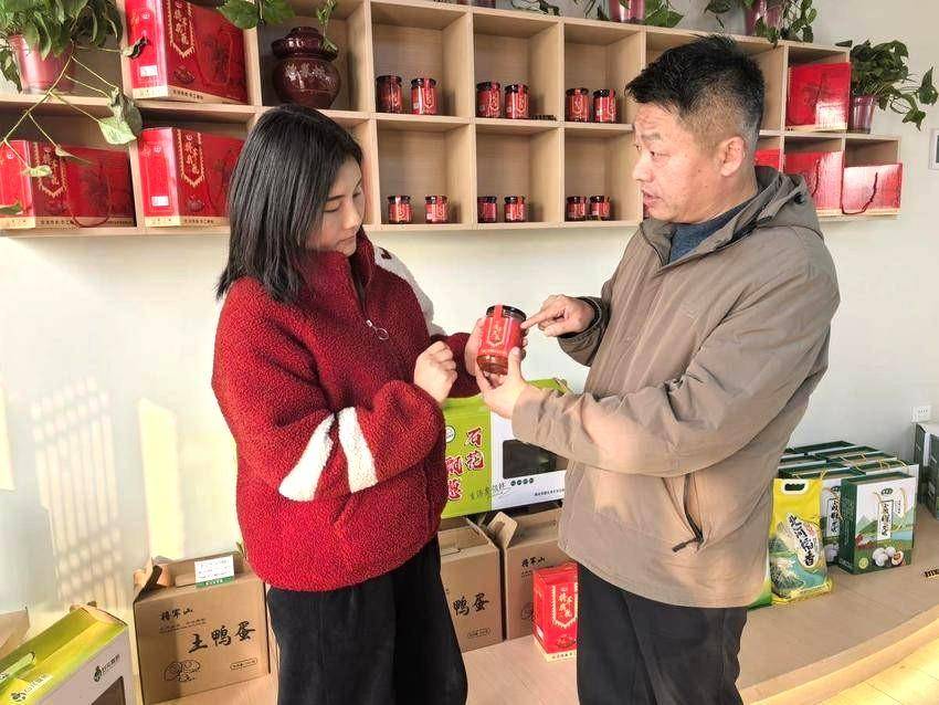 大棚里,村民们正猫腰弓背,将甘薯苗栽进泥土。不远处的加工厂,村民手脚麻利地用古法腌制咸鸭蛋。展销大厅里,石花飘葱、将军腐乳等特色农产品一字排开,满是乡土与年味。 这热闹场景,离不开村党支部书记倪雪锋带着大家用品牌意识给乡土好物“添把火”。 过去,村里好东西养在深闺人未识。“咱这地好,种出的庄稼、养出的物产都不错,可农户各自种植售卖,没品牌标识,只能本地销售,卖不上价,更走不出大山。”倪雪锋站在村头,指着连片沙土地说。 2023年,看着村民辛苦种出的好东西“藏”在地里,倪雪锋心急如焚,决心打出自己的牌子,让乡亲多挣钱、少受累。
