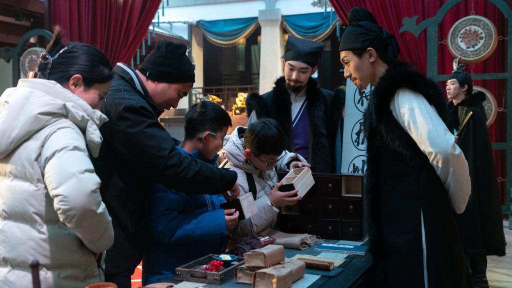 知音殿的沉浸式餐剧秀《三国群芳宴》。新华社记者 熊翔鹤 摄 “节日期间,我们专门推出午间场次,让更多游客感受‘能吃能看能玩’的古风盛宴。用餐完毕,人们可以到茶咖区,这里将传统茶文化与现代咖啡结合,打造‘围炉煮茶+高空观景’复合体验空间。”武汉文旅集团两江文旅现场项目负责人刘斌说。 在知音殿楼上,62岁的退休职工石鸿鸣和家人凭栏远眺,只见长江大桥上车流如织,对岸黄鹤楼在薄雾中若隐若现。他告诉记者,这里曾是许多老武汉人童年记忆里的“秘境”,现在被开发成文旅项目,让老地标焕发新活力,给人们带来不一样的过年体验。