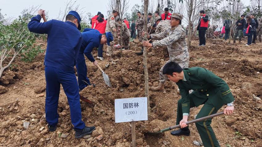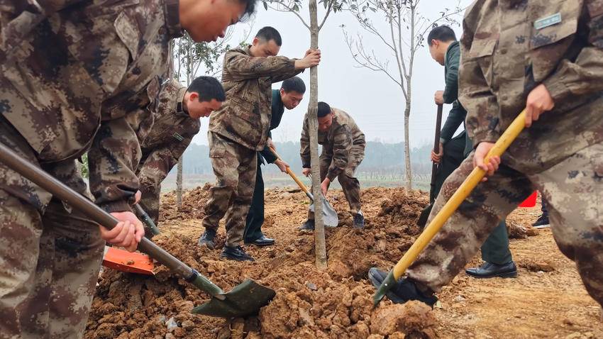 经过辛勤的劳作,一棵棵新栽的树苗昂然挺立,在春风中焕发生机,构成靓丽的“双拥林”风景线。活动共有100多名现役军人、消防员、机关企事业单位干部职工、基干民兵、退役军人等志愿者参加,种植桂花树苗、红玉兰苗等300余棵。
