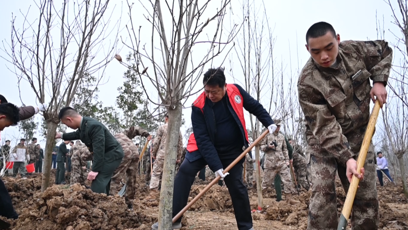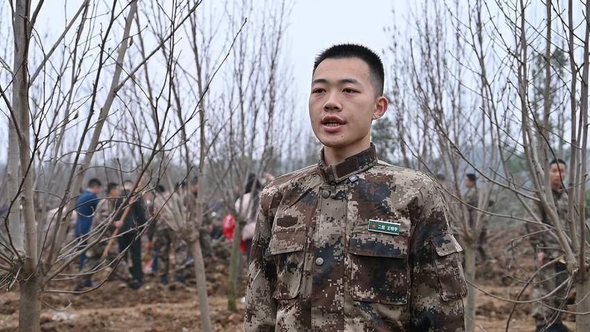县退役军人事务局副局长周健:“我们组织返乡退役军人与预定新兵共同植树,既践行绿色发展,又以‘老兵带新兵’传承红色基因、延续双拥传统。下一步,我们将创新活动形式,用心做好退役军人服务与拥军优属工作,持续推动军民共建活动走深走实。”