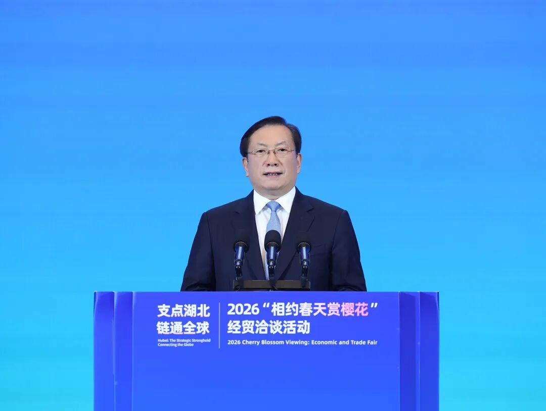 王忠林代表省委、省政府向出席活动的来宾表示热烈欢迎,向长期以来关心支持湖北发展的各国各界朋友表示衷心感谢。他说,习近平总书记对湖北情深似海、厚望如山,赋予湖北加快建成中部地区崛起重要战略支点的使命任务,要求湖北打造内陆开放高地。本次“相约春天赏樱花”经贸洽谈活动以“支点湖北 链通全球”为主题,希望与海内外朋友一道,进一步抢抓时代机遇、深化务实合作,携手共建支点、实现互利共赢。 王忠林指出,湖北得中独厚、九省通衢,科教富集、产业向新、近悦远来,在国家发展全局、开放大局中具有独特优势。近年来,坚持对内对外开放并重,内外联通拓展新空间,产贸融合壮大新动能,引育并举激发新活力,内陆开放高地建设迈出坚实步伐。站在“十五五”新的历史起点上,湖北正牢记习近平总书记殷殷嘱托,奋力推动支点建设取得决定性进展。湖北将推进能级更高的开放,持续完善“铁水公空”多式联运体系,发展壮大数智经济、服务经济,加速推动进出口总额迈上万亿级;推进引领更强的开放,加快湖北自贸试验区制度创新,大力发展“跨境电商+产业带”,建设高效贸易出海物流通道;推进合作更深的开放,强化产业链供应链招商、科技招商、物流招商,推动光电子信息、大健康等优势产业融入全球产业链,打造国内国际双循环的重要枢纽。湖北将以“大营商观”构建一流发展生态,为广大企业在鄂投资兴业提供更优服务、更好保障。诚邀海内外朋友与湖北一道,携手开创支点建设新局面,共同谱写中国式现代化湖北篇章。 袁晓明致辞说,中国的发展离不开世界,世界的繁荣也离不开中国。今年是中国“十五五”开局之年,“十五五”规划纲要绘就了发展新蓝图。商务部将坚决贯彻落实规划纲要部署安排,大力提振消费,积极扩大自主开放,加大引资稳资力度,更大力度吸引和利用外资,积极塑造引资新优势。本次“相约春天赏樱花”经贸洽谈活动是商务部2026年“投资中国”的重要活动之一,既是信心之约,也是发展之约。商务部将大力支持湖北充分发挥区位、产业、人才等优势,助力湖北加快建成中部地区崛起重要战略支点。希望各位来宾到湖北及中国各地感受发展活力,达成丰硕合作成果。 侯赛因·哈马迪,华润(集团)有限公司董事长王祥明,中国交通建设集团有限公司董事长宋海良,斯泰兰蒂斯集团执行副总裁、亚太区首席运营官奥立维,中国能源建设集团有限公司董事长倪真,中国国际金融股份有限公司董事长陈亮作了发言。武汉市、省商务厅主要负责人分别就武汉投资环境、湖北开放型经济发展情况作推介。现场举行了“鄂州—圣保罗”“武汉—巴库”“突尼斯—武汉”三大国际通道的首发式。 省领导张文兵、盛阅春、彭勇、陈平,武汉大学党委书记朱孔军,部分外国驻华使节代表,境内外政府机构和国际经济组织代表、世界500强和知名企业负责人、境内外商协会和金融机构负责人等出席。 来源:湖北日报 编辑:邓植元|审核:陈声权 琚晓青