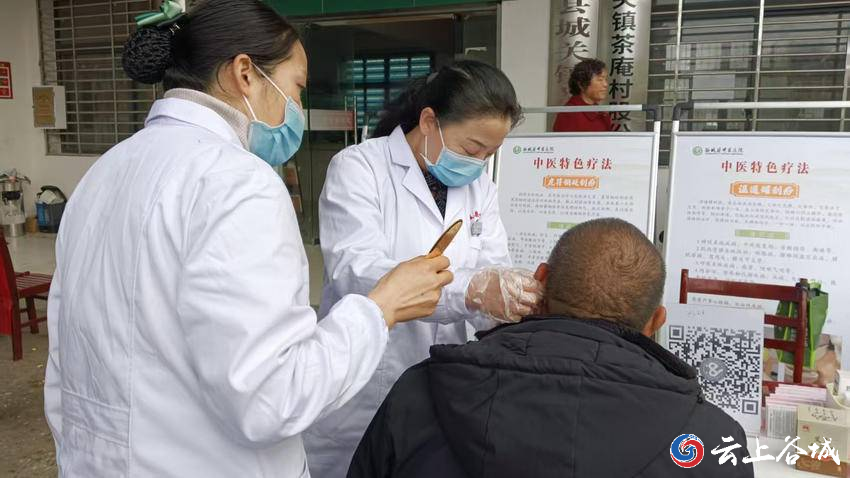 3月31日,谷城县中医医院治未病科走进城关镇茶庵村,把特色中医药服务送到群众家门口。