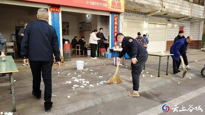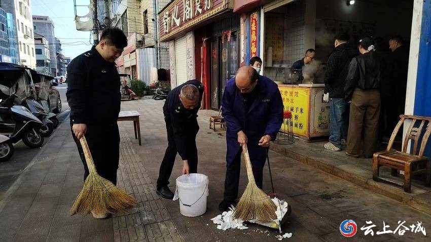 4月1日,谷城县石花镇综合执法中心启动“镇区环境提档升级专项行动”,将“执法整改”转化为“服务上门”,帮助商户提升经营环境。 执法人员对镇区10余家特色牛肉面店开展“上门服务”,帮助店主清理店外杂物、规范桌椅摆放、清扫门前白色垃圾,累计整改出店经营8起,清理卫生死角30余处。
