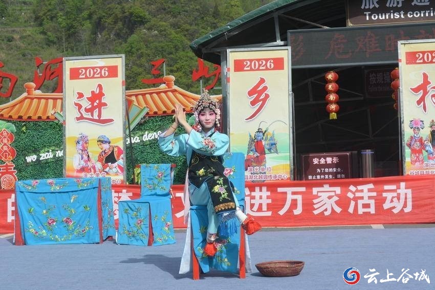 清明假期间,为丰富游客来南河小三峡景区游玩时的看点和当地群众文化生活,谷城县南河镇文体中心联合谷城湖北越调传承中心,在南河小三峡景区码头停车场,开展“送戏进景区”活动。