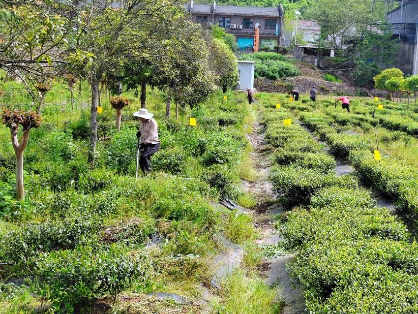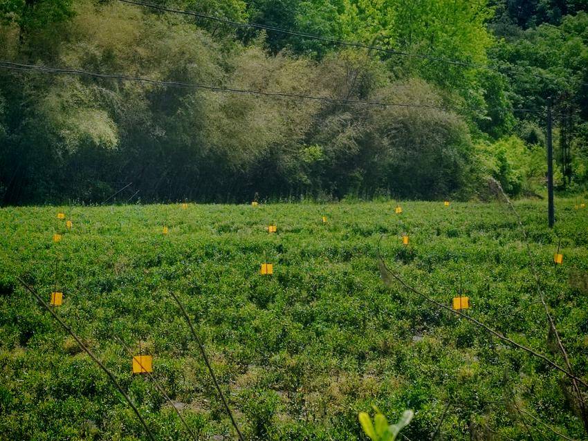 不施除草剂、不打农药,人工管护“锁”住生态本味 “化学除草快是快,可土壤残留、茶树伤根,再好的茶也没了灵气!”裕满春茶园负责人杨洋一边指导茶农劳作,一边笑着说。在这片茶园,人工除草是雷打不动的“铁规矩”——从行间杂草到根部细草,每一处都要手工清理,拔除的杂草盖在草根上腐烂,化作天然有机肥,既护土壤、保肥力,又实现资源循环,让茶树扎根在“无添加”的净土里。 不止除草,病虫害防治也走“绿色路线”。放眼五山万亩茶园,黄色粘虫板整齐悬挂,靠着害虫趋色性诱杀蚜虫、小绿叶蝉;茶园里特意保留瓢虫、草蛉等“天然卫士”,构建起物理防治的生态平衡网。从施肥到管护,严格对标有机茶标准精细化管理,这是裕满春的坚持,更是五山镇茶产业的集体共识。